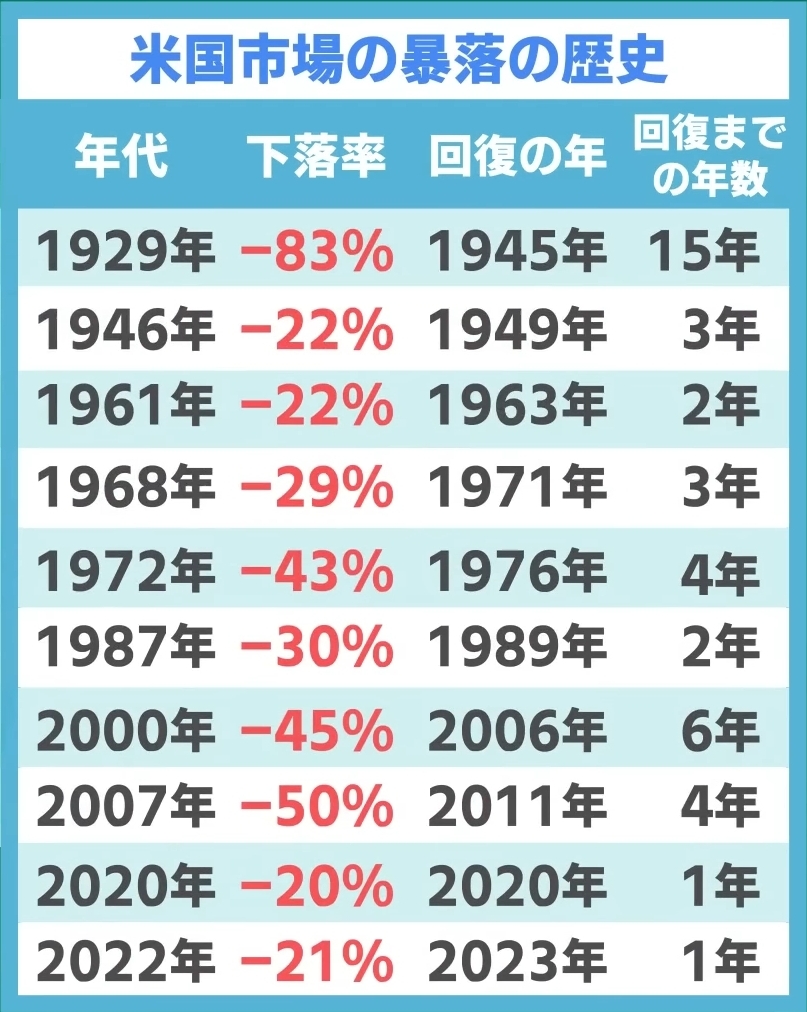この米国市場の暴落の歴史から見えてくる真実は以下の3つ。